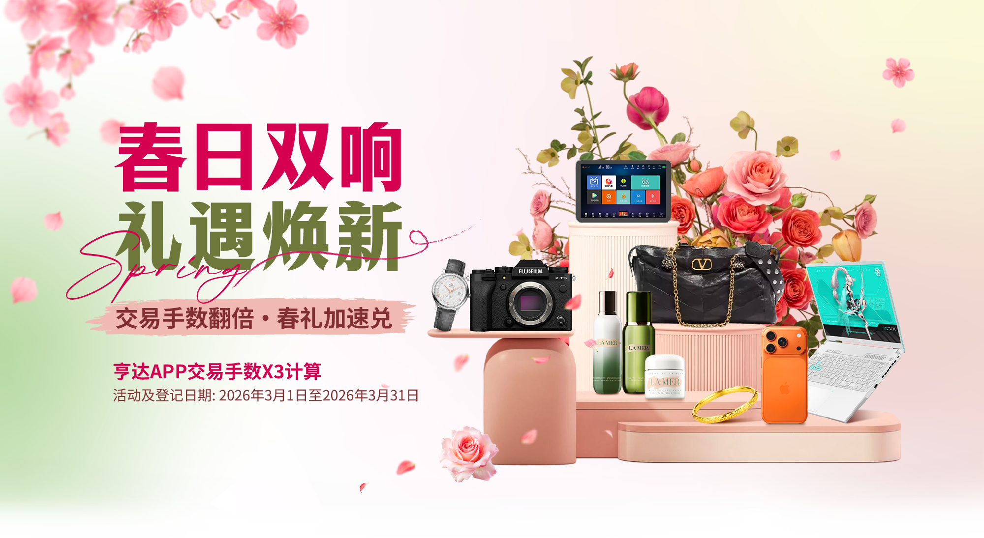 - 活动内容: 客户在登记活动后,活动期间内的净入金和平仓手数(美股产品不计算在内)达到相应要求,即可在层级的奖品进行五选一。若使用 亨达APP进行交易,其平仓手数将 按X3倍计算。例如:客户在MT4平仓手数10手及在APP平仓手数10手,实际计算手数为10 + (10×3) = 40手。
